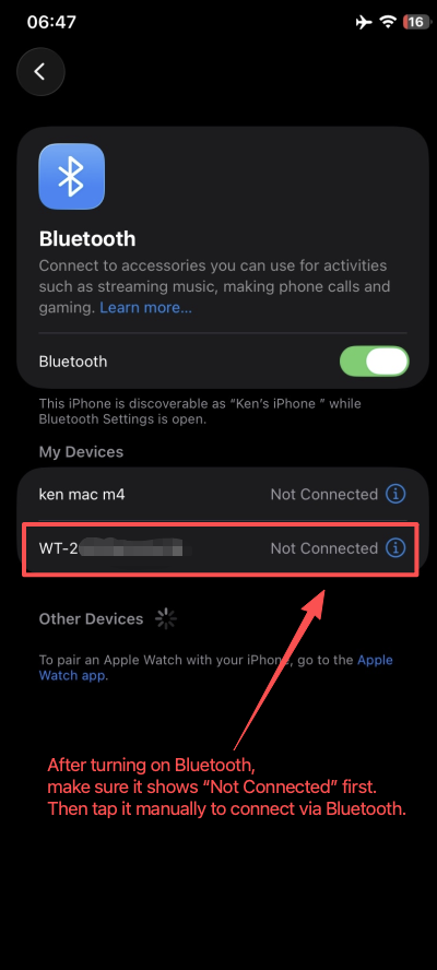 - iPhone shows Connected 🔗